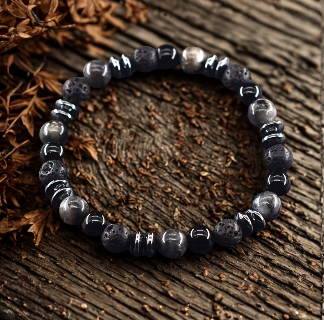 Bracelet en Labradorite et Pierre Volcanique Noire – Protection et Force Intérieure
