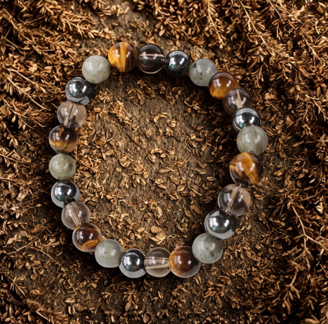 Bracelet en Œil de Tigre, Labradorite et Hématite – Protection, Énergie et Intuition
