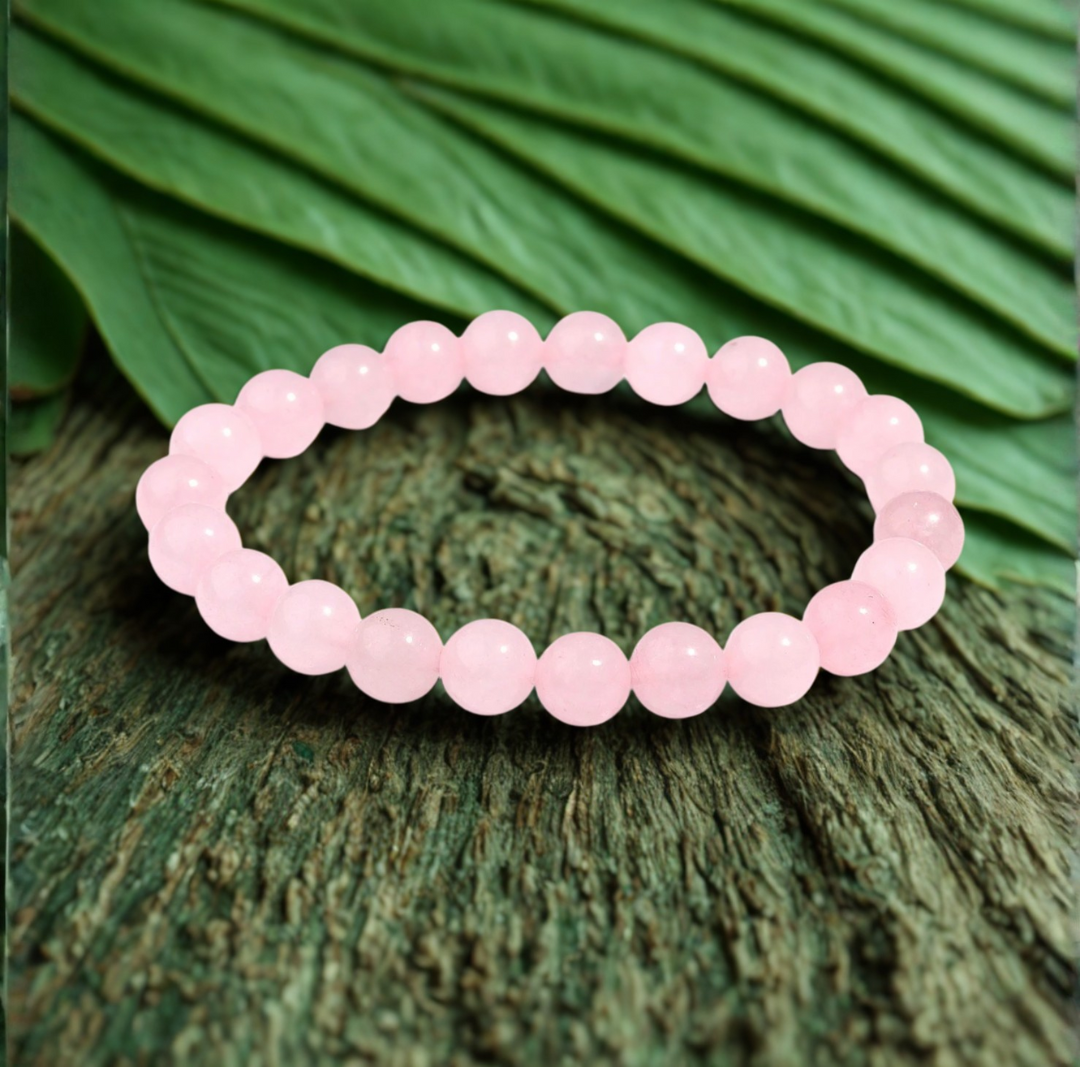 Bracelet en quartz rose naturel – perles 8 mm. Pierre d’amour et d’apaisement, symbole de douceur et d’harmonie intérieure.